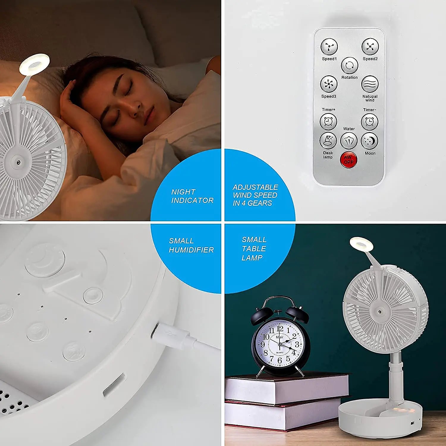 Equipped with a 7200mAh rechargeable battery, this fan operates wirelessly for up to 34 hours, making it a reliable battery fan for long trips, outdoor adventures, or power outages. It features four adjustable wind speeds (2.3–4.0m/s), allowing you to tailor the airflow to your preference. When fully extended, it functions as a standing fan; when retracted, it becomes a multi-speed rechargeable fan for your desk or personal space.